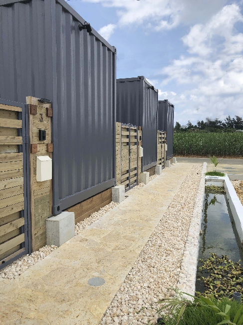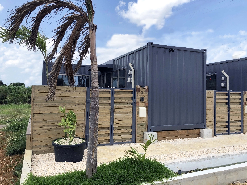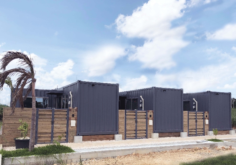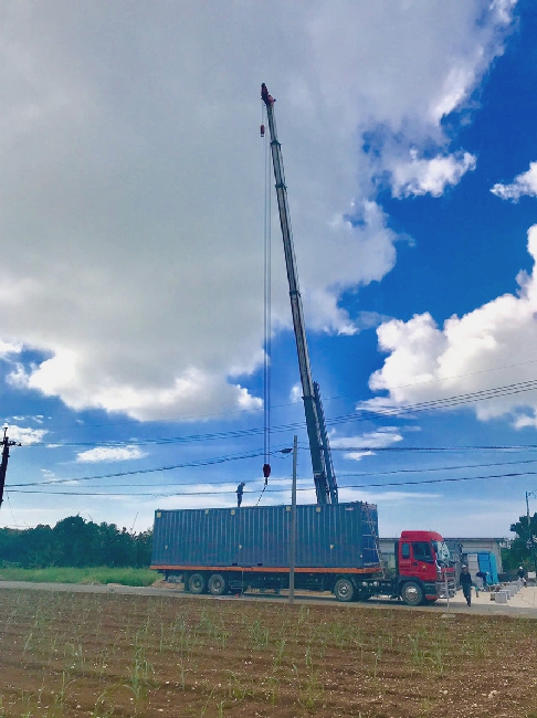 離島での施工性、工期を考慮して工場生産したコンテナユニットを現地にて組み上げました。